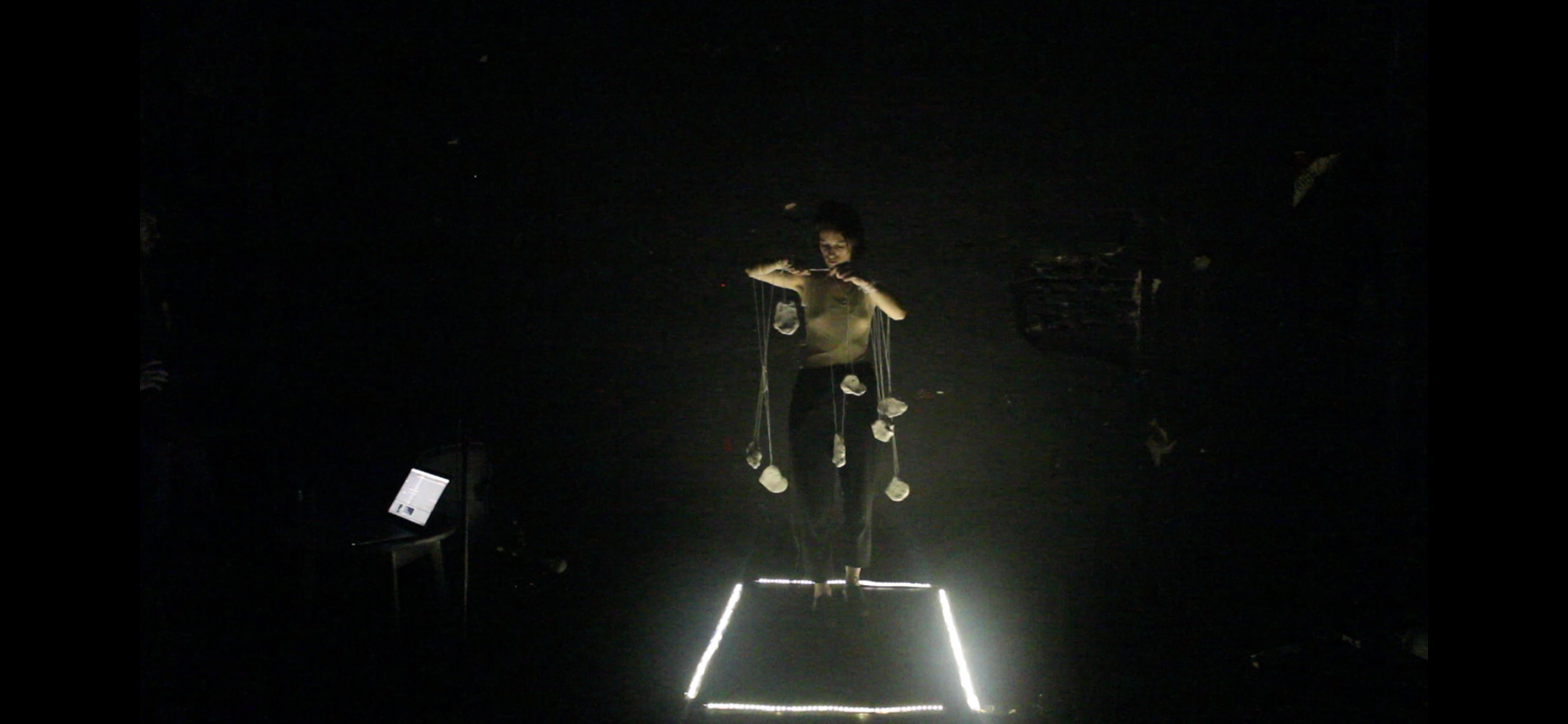 Performance realizada en el 2023 en la materia Artes Multimediales 2, Cátedra Rodríguez con el eje Cuerpo e Hibridación Tecnológica en el Área Transdepartamental de Artes Multimediales de la Universidad Nacional de las Artes.